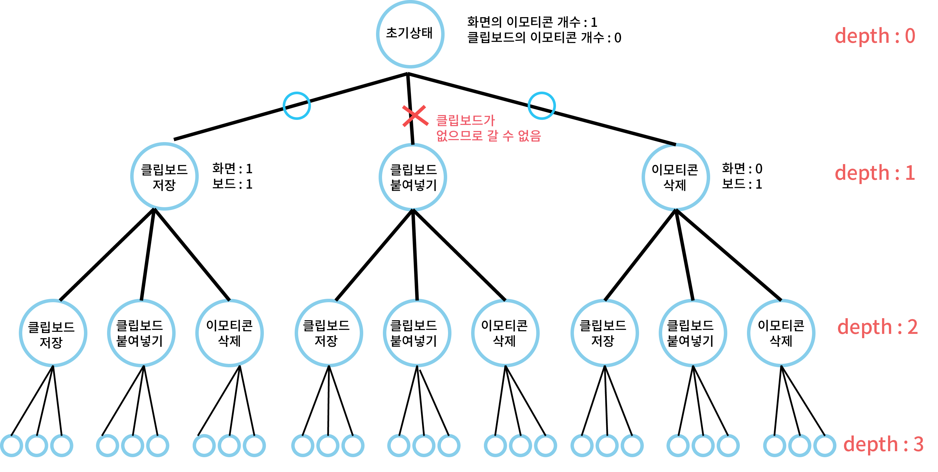 - 그럼 [그림]에서 맨 왼쪽 트리를 중심으로 가장 많이 이모티콘을 만들기 위해선